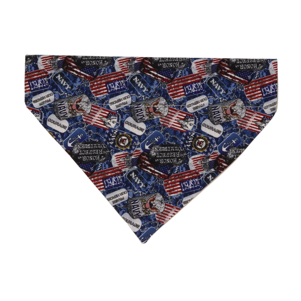 Honor the Navy with the PucciPOOCHIE™ U.S. Navy Bandana! Decked out in classic Navy blue and gold, this bandana is perfect for showing support at military events or daily walks. Let your pet proudly wear their Navy pride!
